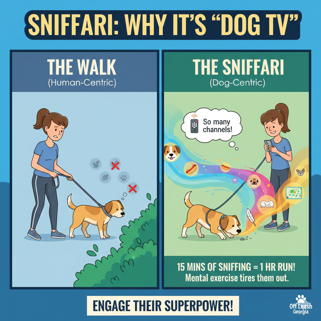 The “Sniffari” Concept: Mental stimulation is often more exhausting than physical exercise. Letting your dog lead the walk and sniff everything they want (a “Sniffari”) lowers their heart rate and reduces cortisol levels.